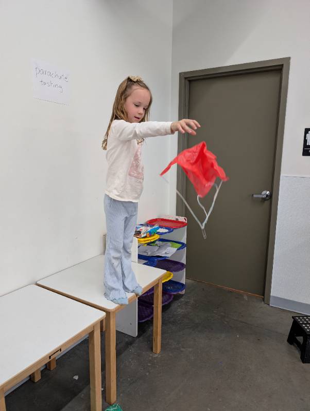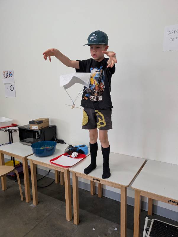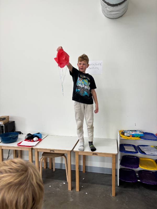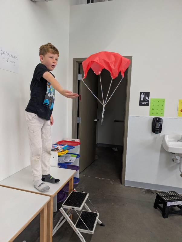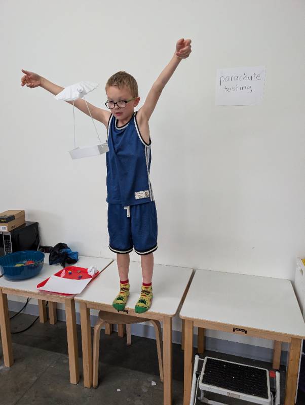 Parachute day brought the most surprises to the heroes. Each hero had to adapt their chute at least once to get their desired results. One hero struggled with frustration as their chute failed to come together many, many times. This hero decided to keep at it and was proud to get good results in the end. This week involved a lot of discussions on how failures teach us the most even when it’s frustrating!