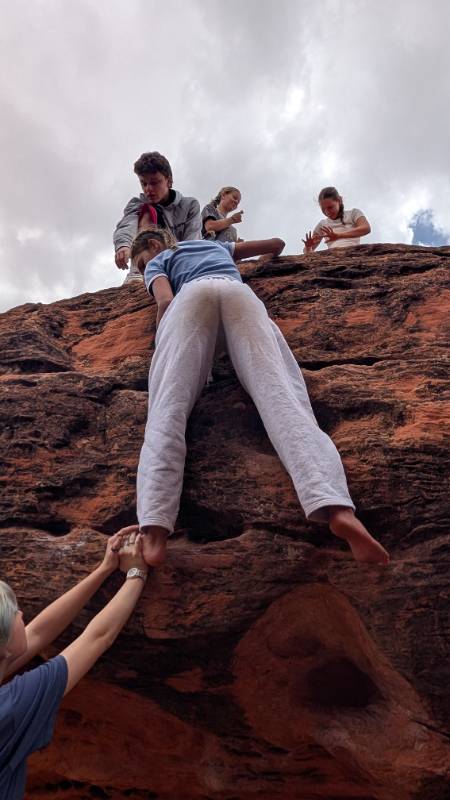 The adventure kicked off bright and early Monday with a drive to Dixie Rock for bouldering and pizza among the stunning rock formations.