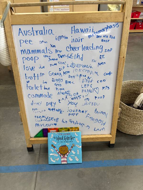 Spark heroes explored how they handle challenges. Do they turn it into a game and make it fun? Or do they push through and just do the hard thing? One of the biggest challenges Sparks heroes take on is learning to read. To help make sense of the words all around us, the heroes began collecting words together, inspired by the book The Word Collector by Peter H. Reynolds. We started with words that were fun to say, long words, powerful words, and brand-new words. Throughout the day heroes kept adding words.