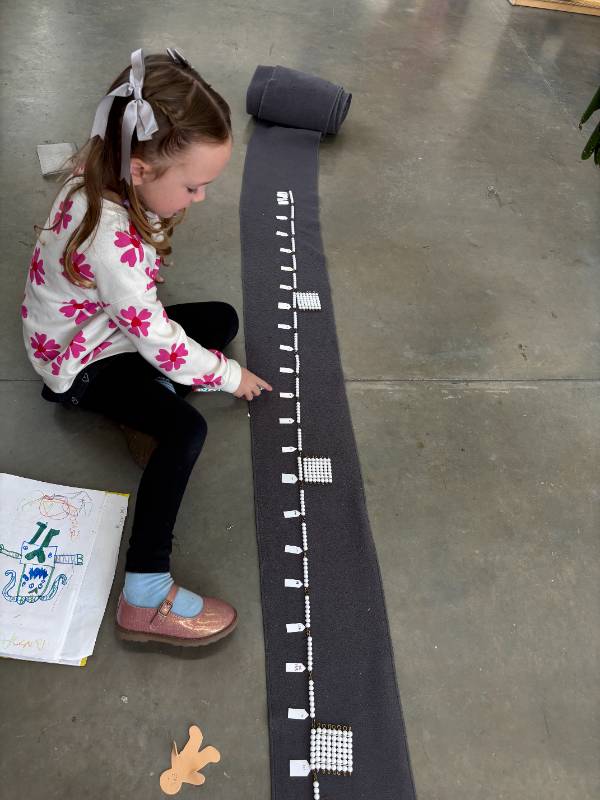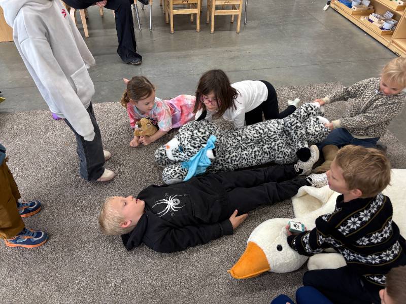 The Spark heroes also spent time tackling other challenging work throughout the week. They practiced skip counting with long bead chains, explored the Waseca language drawers, used their bodies as measuring tools, and dove into books from the library.