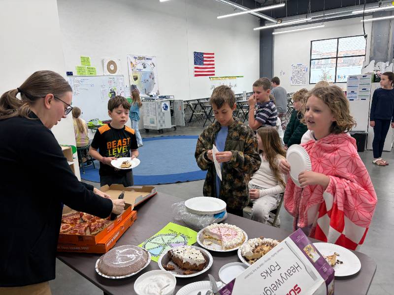 You know it’s a good day when the studio is chock full of Pi and Pie! Heroes celebrated two weeks of Pi Challenge work by earning a pizza and pudding pie party.