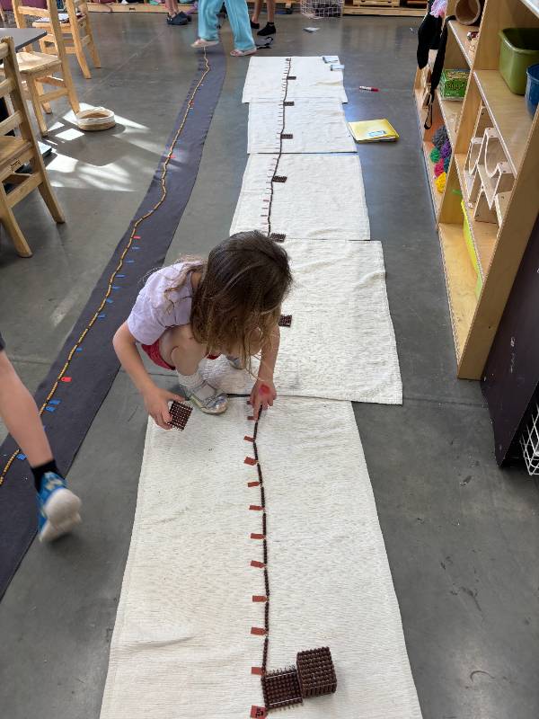 You know it’s a good day when a guide has to go upstairs to get more math works! Sparks are exploding with confidence in their core skills. They are excited that their skip counting songs are becoming so familiar that they can do harder division problems. The Montessori long bead chains are getting more use than they have all year.